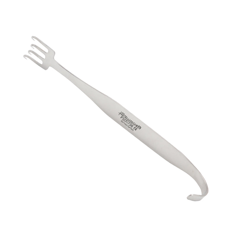 The FREEMAN RAKE Surgical retractors are specialized surgical instruments designed to assist in various surgical procedures by providing effective tissue retraction and exposure of the surgical site. These FREEMAN RAKE Surgical retractors, named after their design resembling a rake, are used to gently and precisely hold back tissues, allowing the surgeon to access and work on underlying structures.